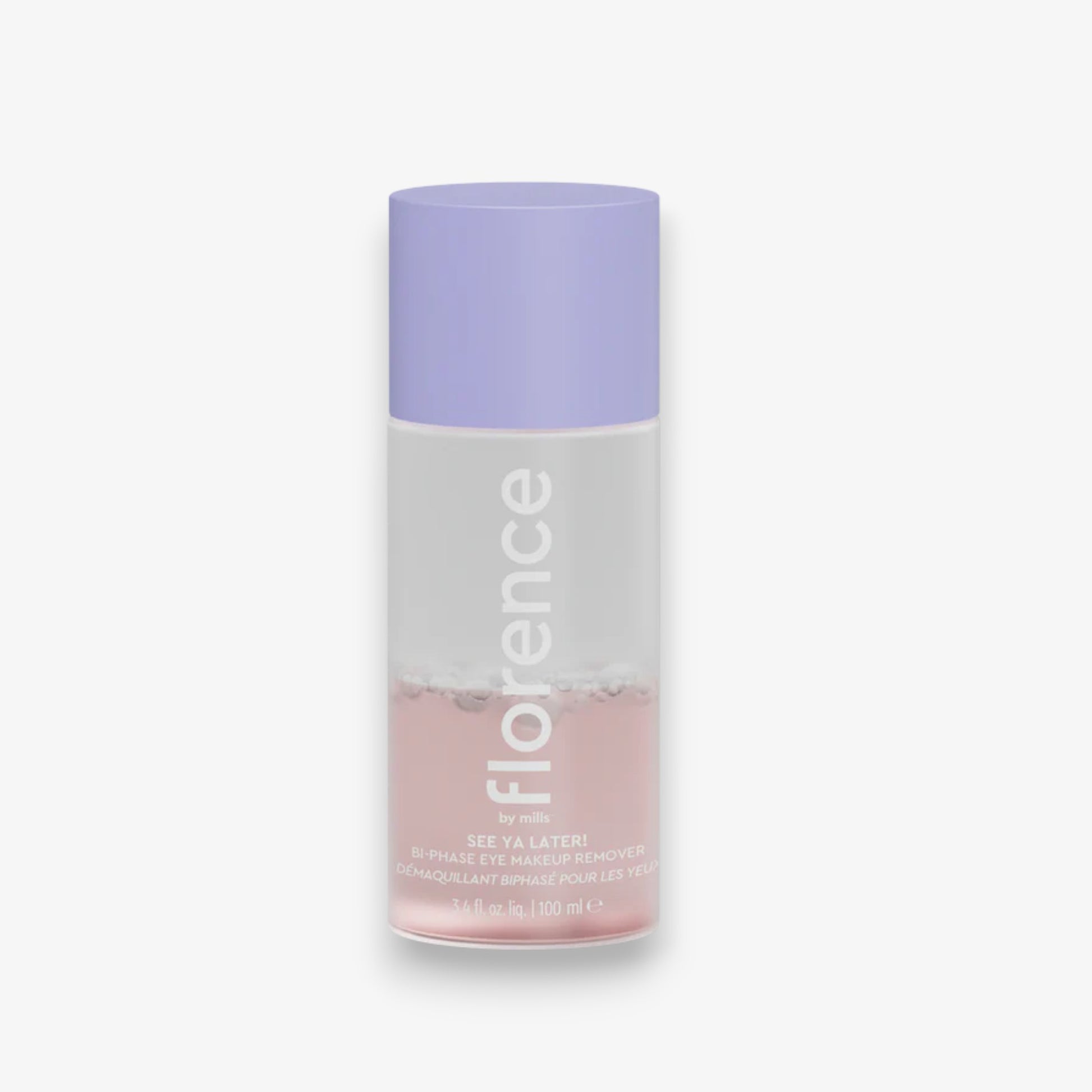 Florence by Mills See Ya Later! Bi-Phase Eye Makeup Remover combina óleo e água para remover suavemente maquiagens à prova d’água e de longa duração, enquanto hidrata e nutre a delicada pele ao redor dos olhos.